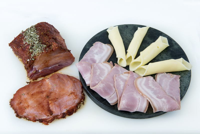 Lomo adobado con queso gouda y bacon