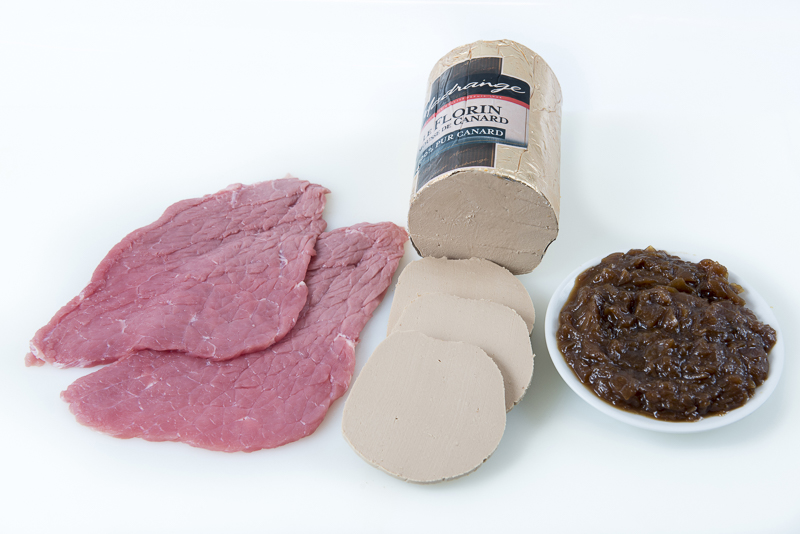 Foie de pato, cebolla caramelizada.